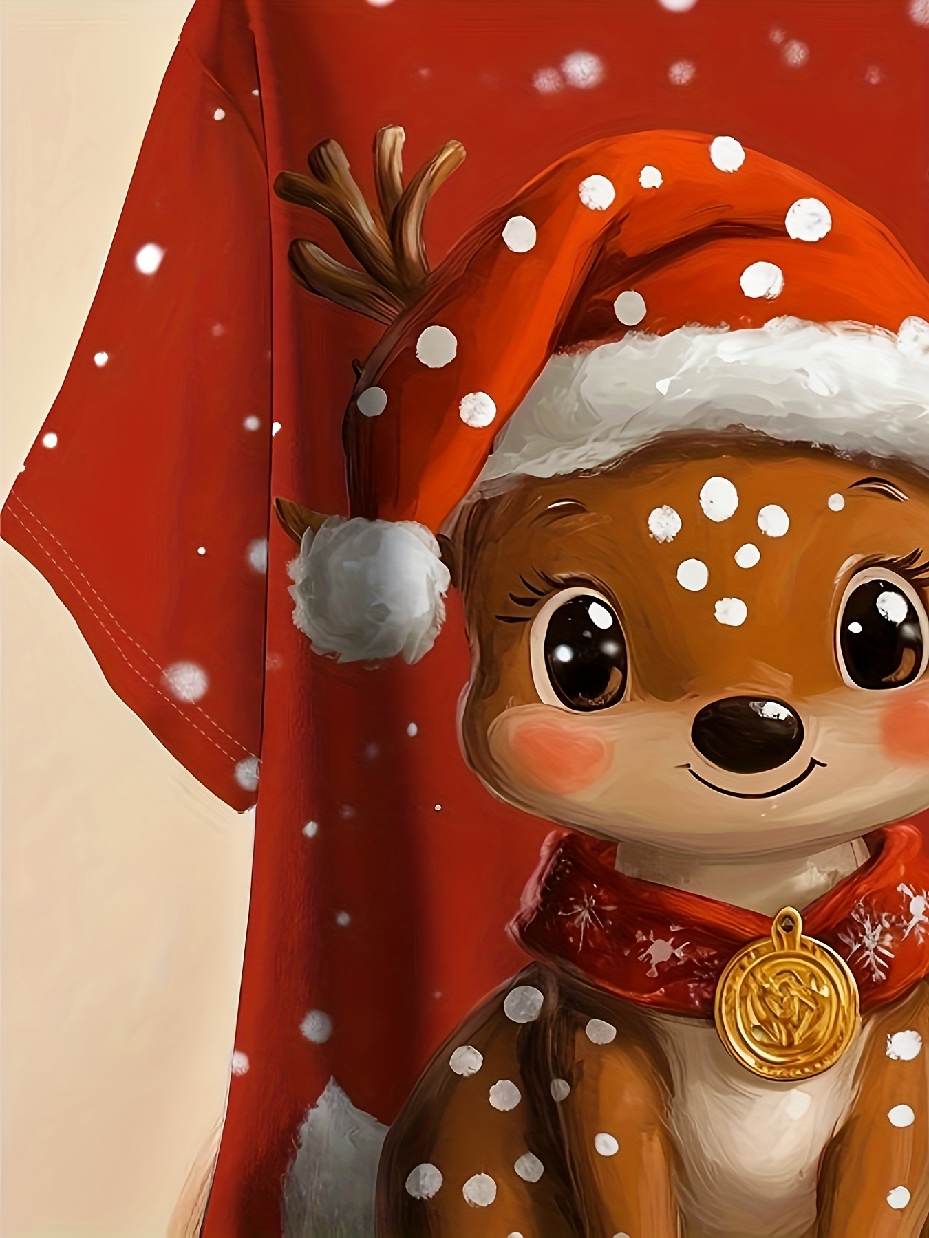 A Plus-Size Women'S T-Shirt Featuring a Reindeer Print with a Christmas Hat - Breathable, Round-Neck, Short-Sleeve Summer Top, Machine Washable with Artistic Design, Made from Comfortable Fabric, Perfect for Casual Wear, a Must-Have for Summer Outfi