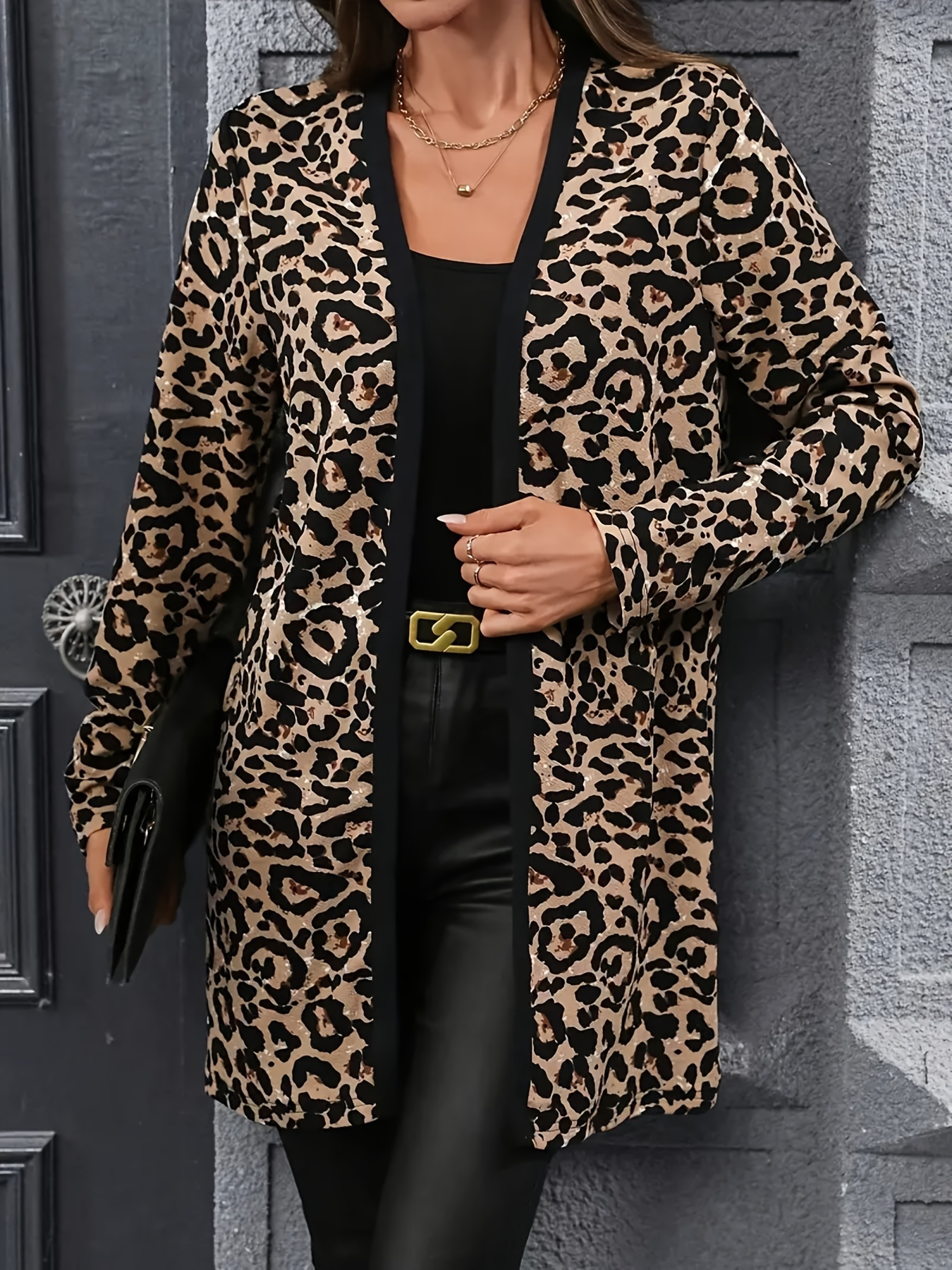 Plus Size Leopard Print Mid-Length Cardigan, Loose & Figure-Flattering Women's Top, Versatile Retro Wild-Style Long-Sleeve Coat For Daily Commute, Parties, Outings, Womens Plus Size Clearance, Christmas