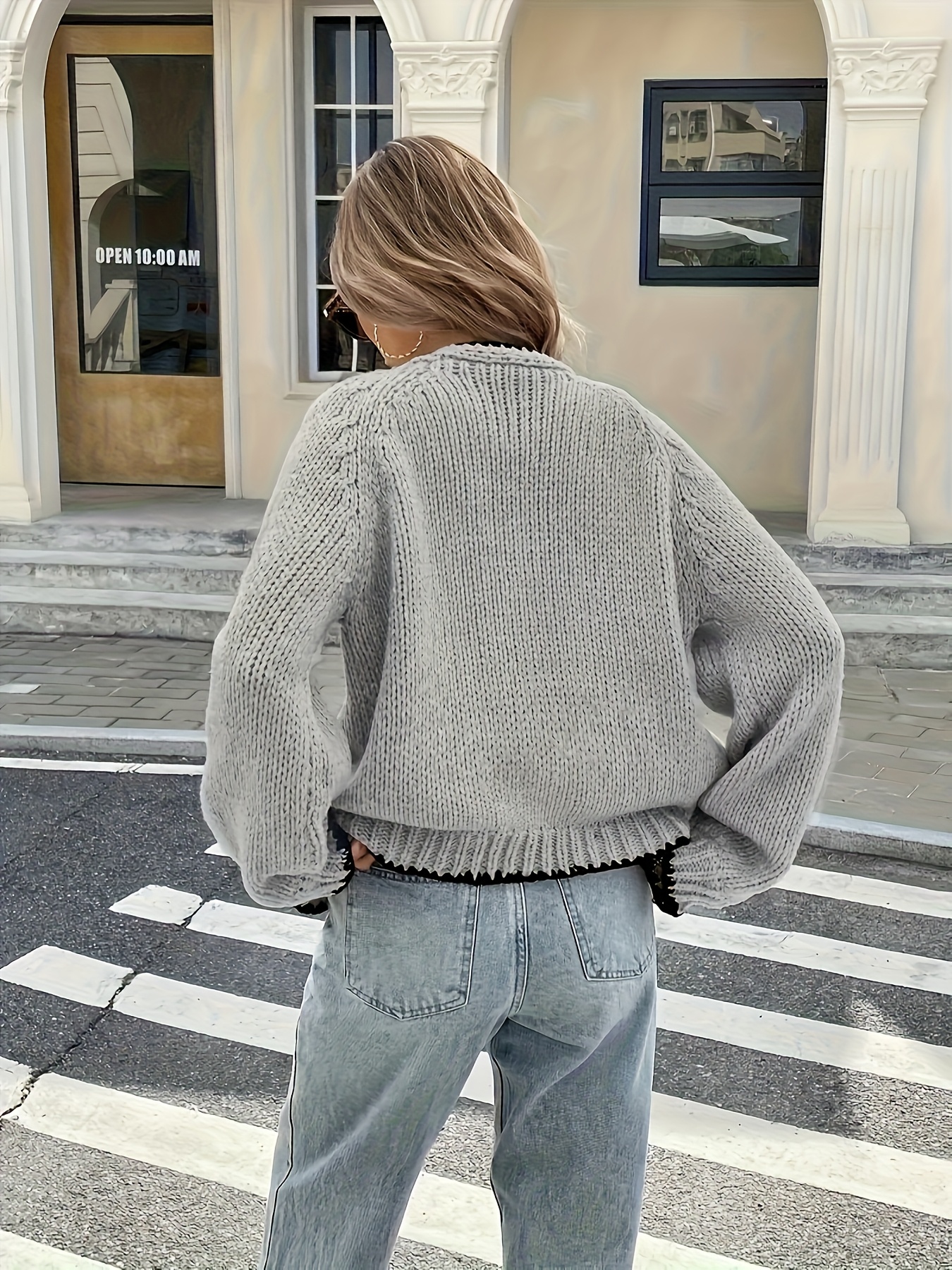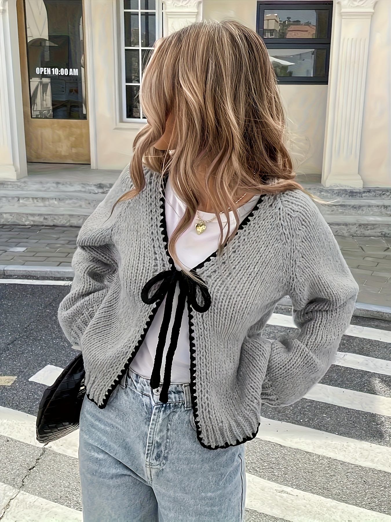 Plus Size - Women'S Plus Size V-Neck Cardigan - Soft, Cozy, and Stylish with Contrast Bow Detail, Long Sleeve, Button-Up Front, Perfect For Fall/winter, Casual Wear, Casual Wear Cardigan | Vneck Cardig