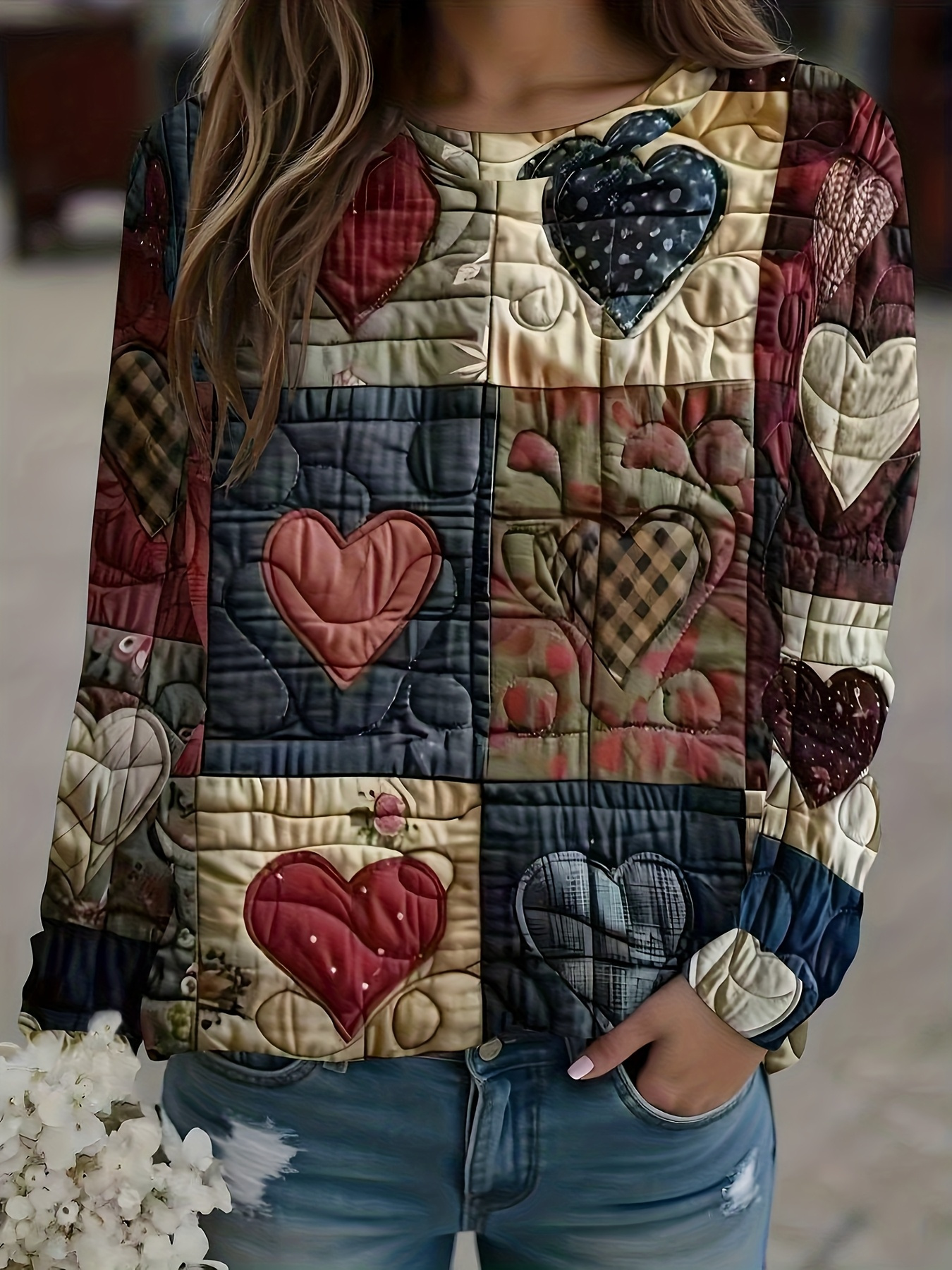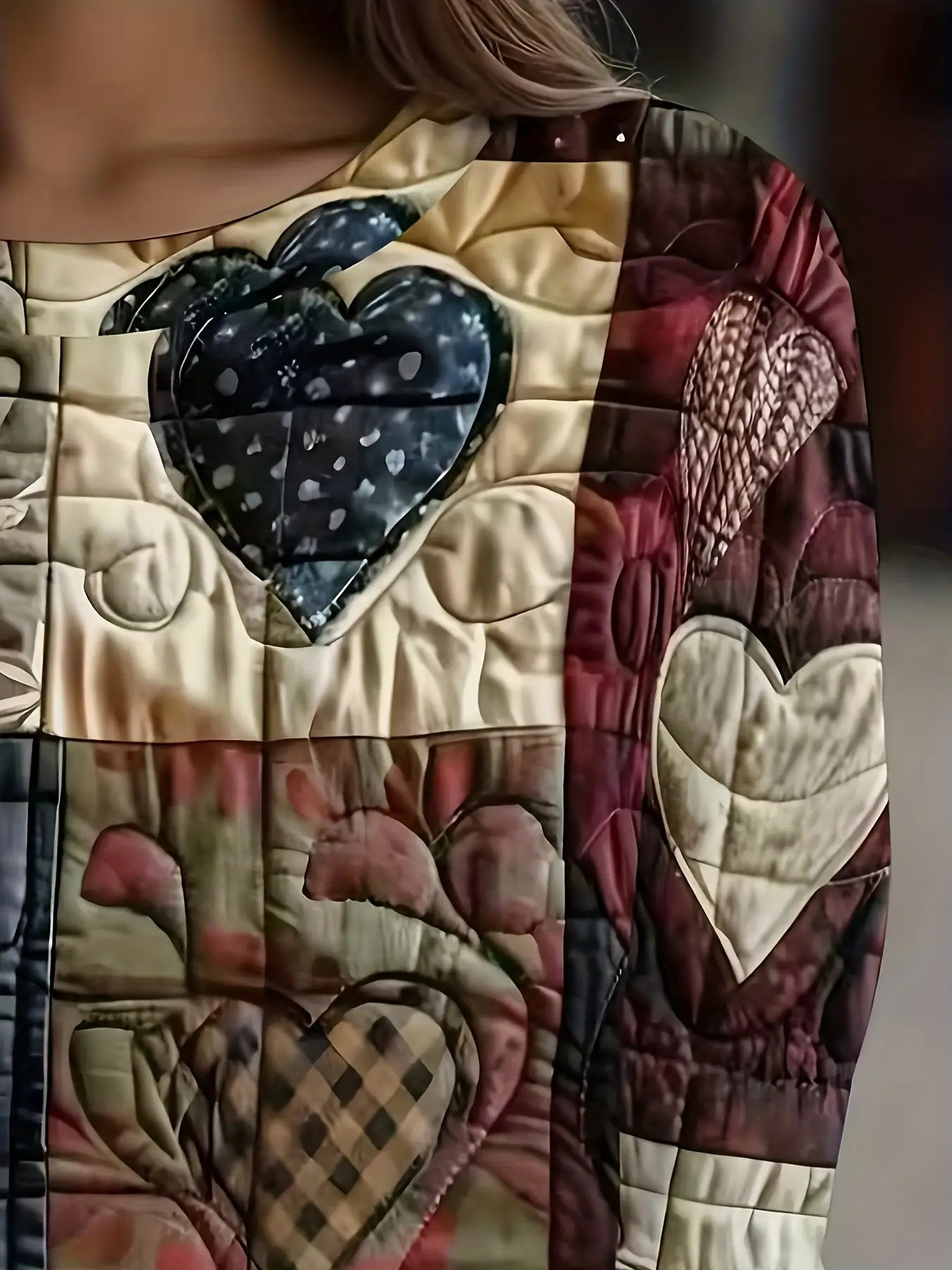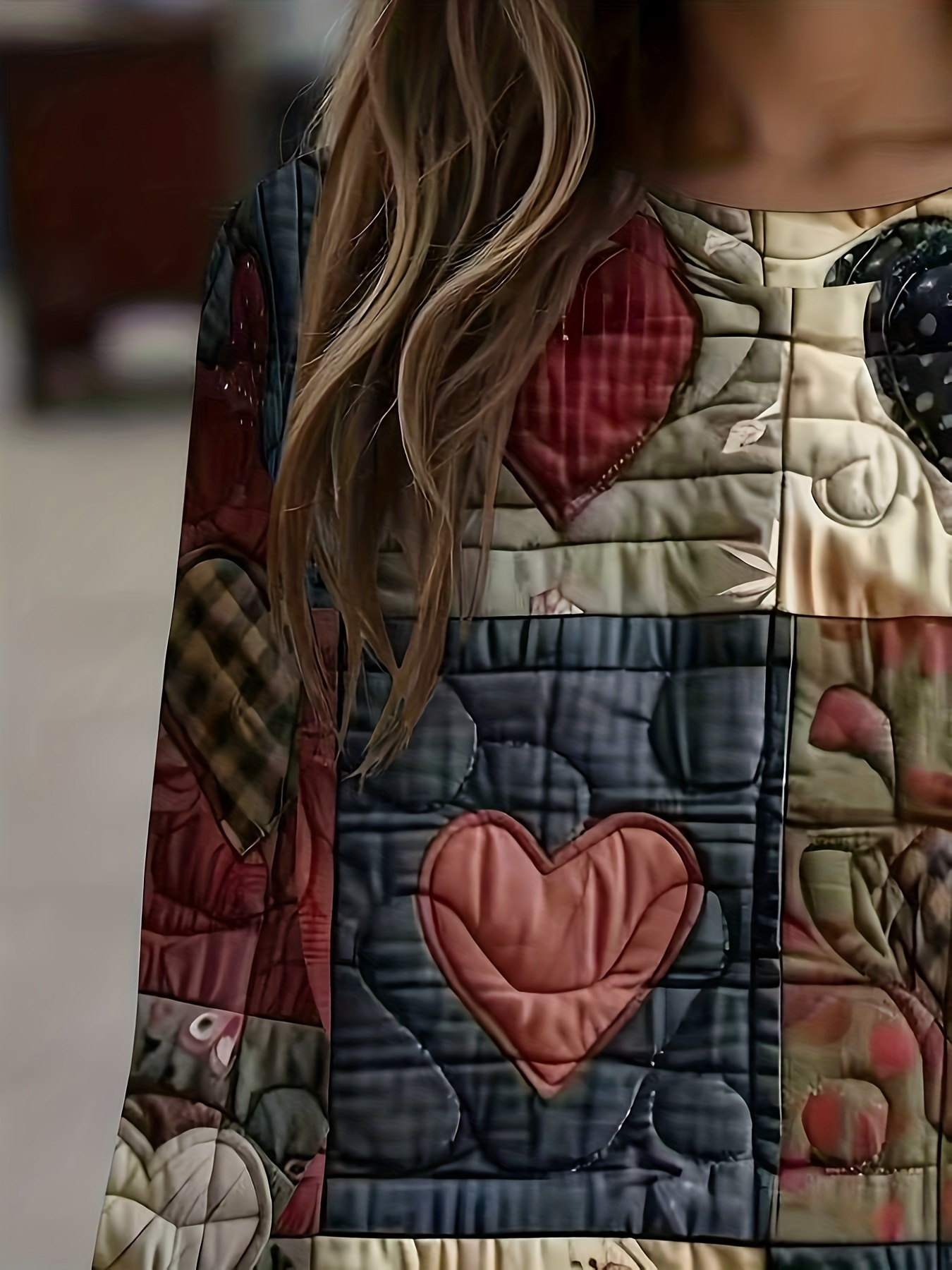 Women's Soft Patchwork Sweater Jacket with Heart & Plaid Print - Winter Warm Coat, Belt-Free Waist Tie, Layered Collar & Round Neck, Machine Washable Long Sleeve Blazer (Brown/Black/Red/Beige/Grey/White/Blue/Pink) - Layered Over Dresses
