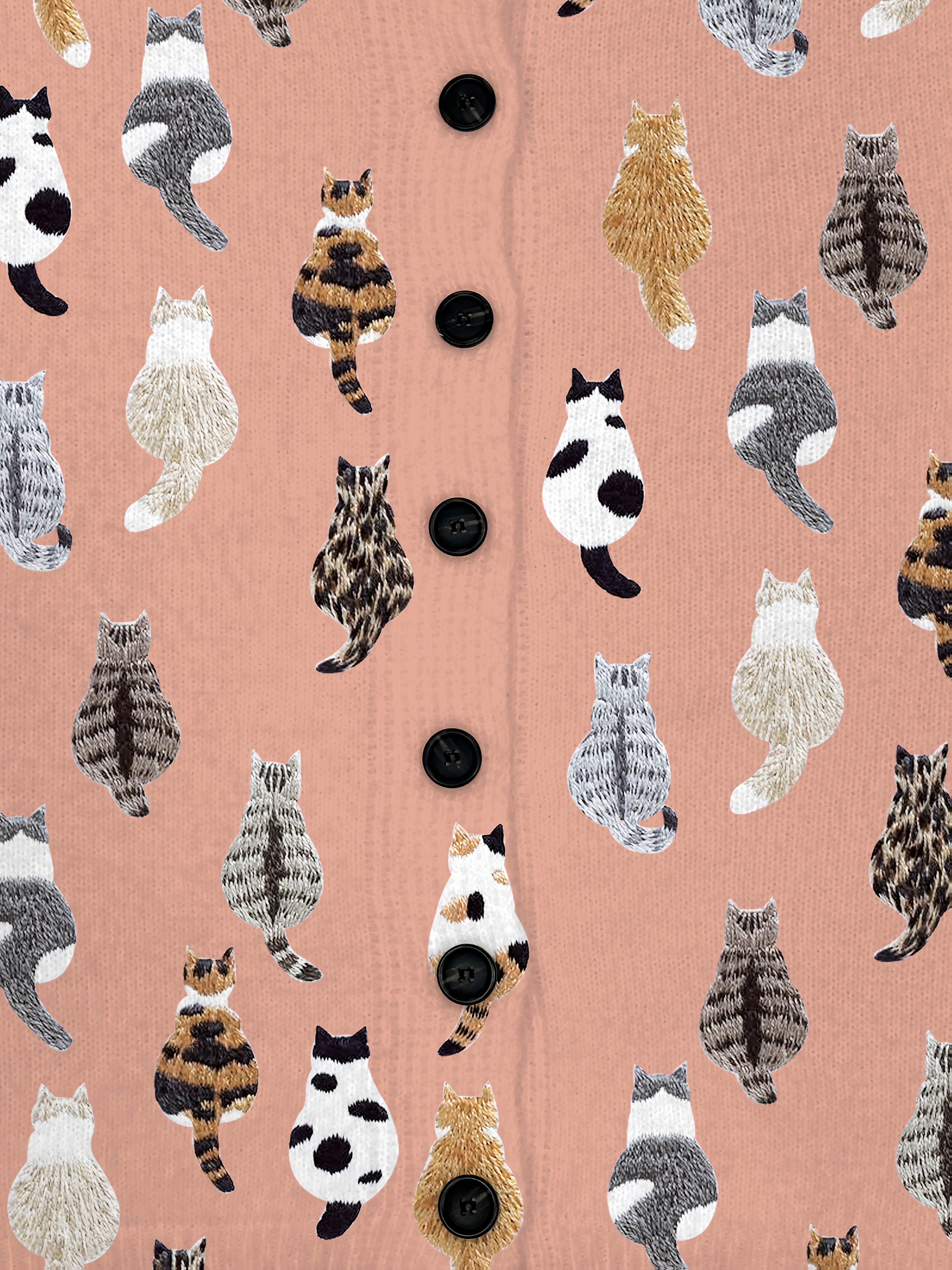 [Playful Design] Plus Size - Women's Lightweight Sweater Jacket - Pastel Pink With Black & White Animal Print, Button-Front Closure, Non-Bulky Long Sleeve Cardigan For Fall/Winter, Everyday & Formal Outfits - Position BK 052032, Fall Fashion, Playful Design, Comfortable Fit, Stylish Outerwear, Fashion Lovers, Cat Cardigan/Sweater For Women, Cardigan For Curvy Women, Curve Cat Print, Cardigans Women Good Quality, Vest Woman Large Size With Sleeve