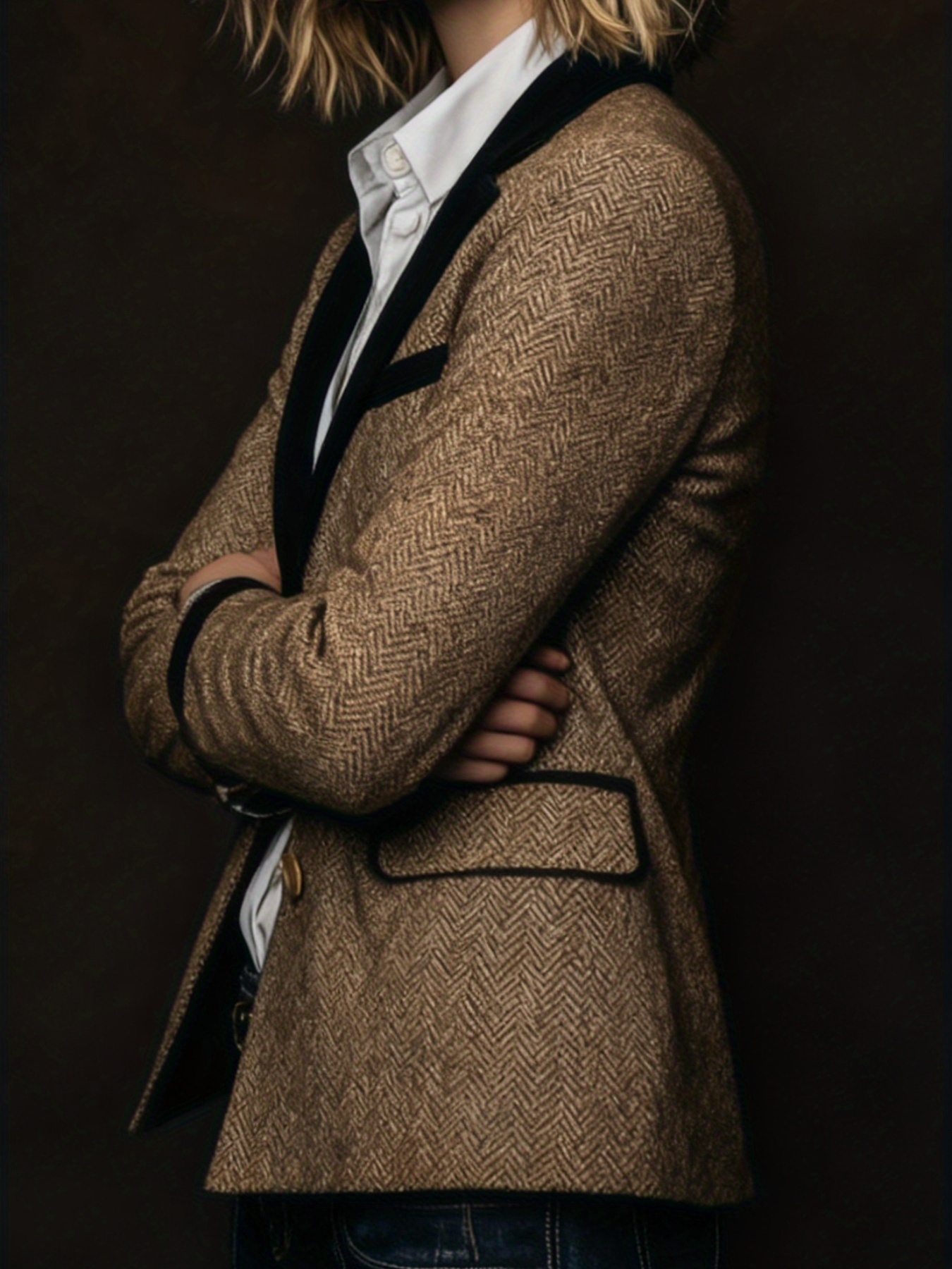 Elegant Double-Breasted Blazer Jacket - Button Front Closure, Loose Fit Collar Coat, Machine Washable Solid Color for all-Season Professional & Casual Wear (HW915)