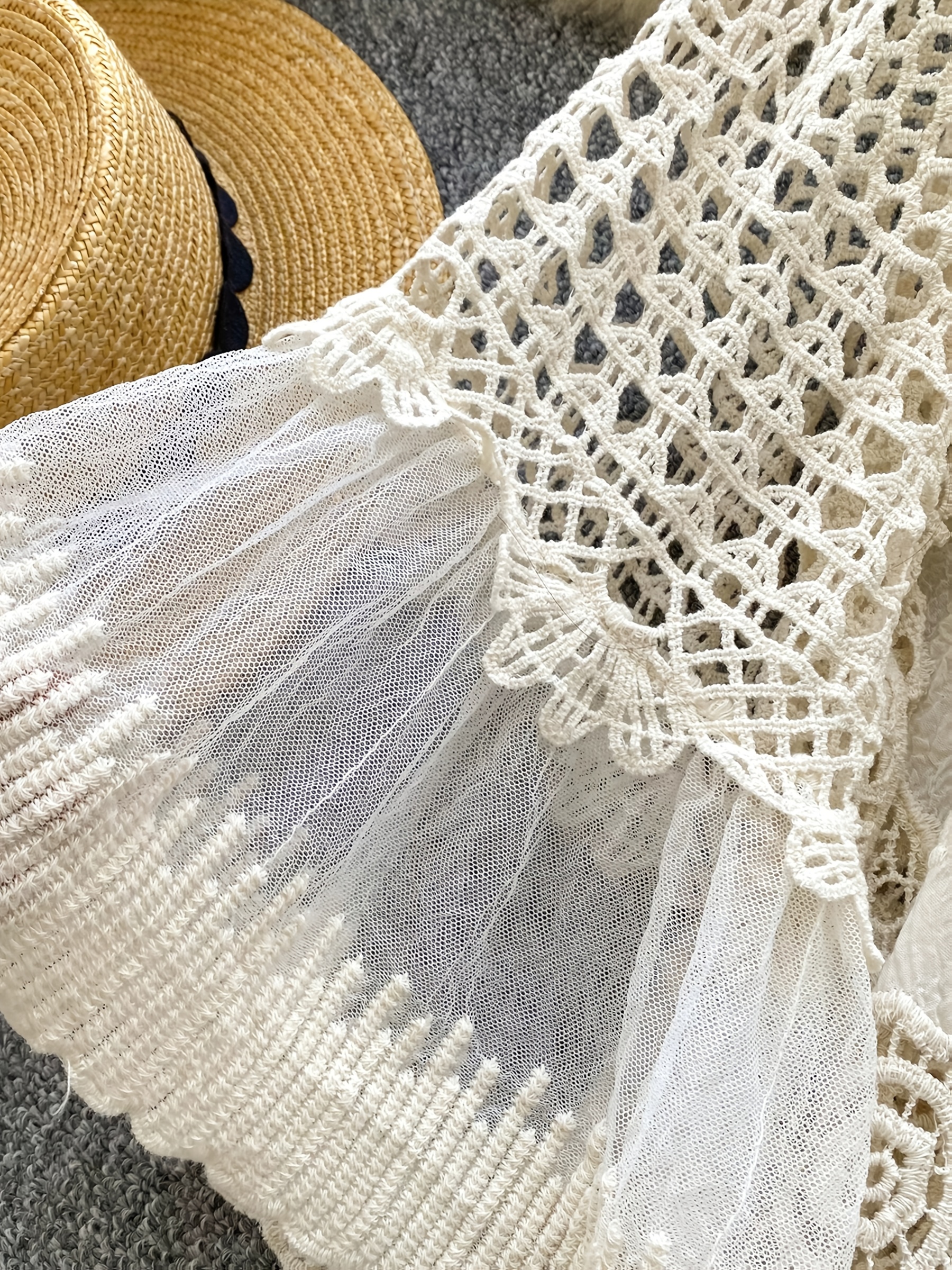 NEW Bohemian Style Vintage Dress Women's Loose Hollow Hook Flower Design Short Midi Skirt