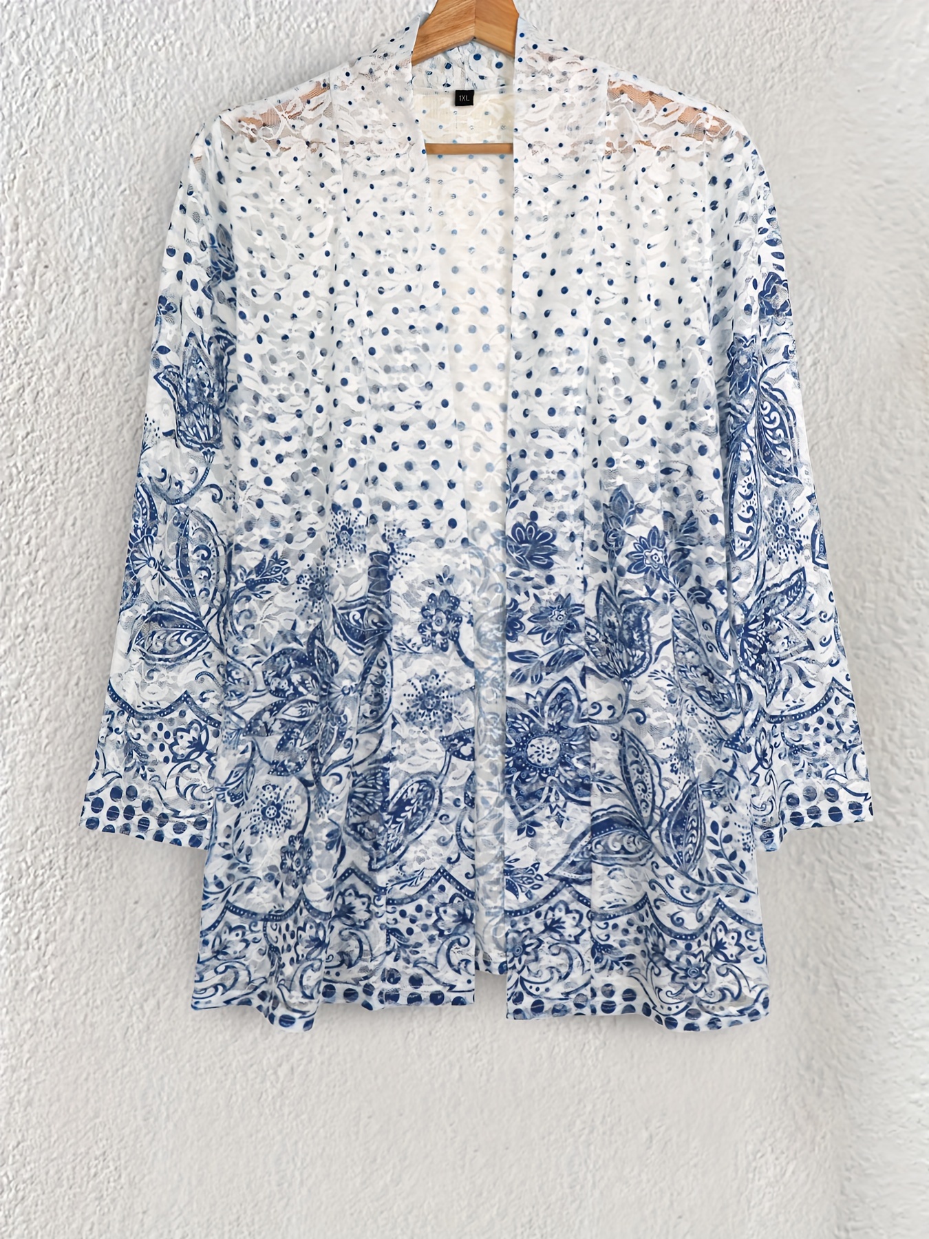 Women's Large Size Lace Color Block Anti-Sun Open Cardigan Suitable for Beach and Street Wear in All Seasons