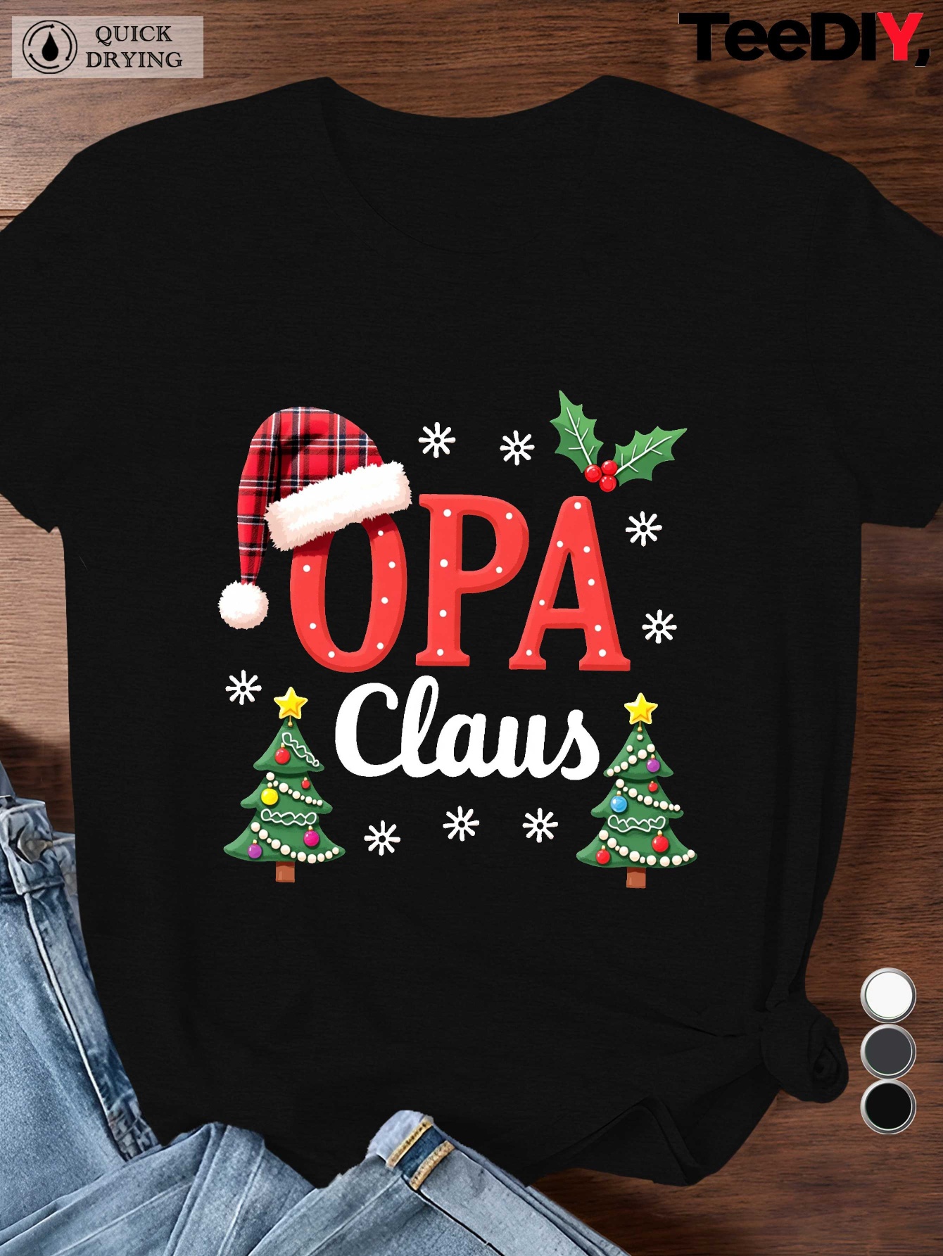 Women'S Plus Size Opa Claus Christmas Greek-Themed Santa Hat & Tree Graphic T-Shirt - Short Sleeve Casual Round Neck Holiday Party Top with Greek Lettering, All-Season Fit for Greek Orthodox Christmas Celebrations & Casual Attire - Festive Red & Gre