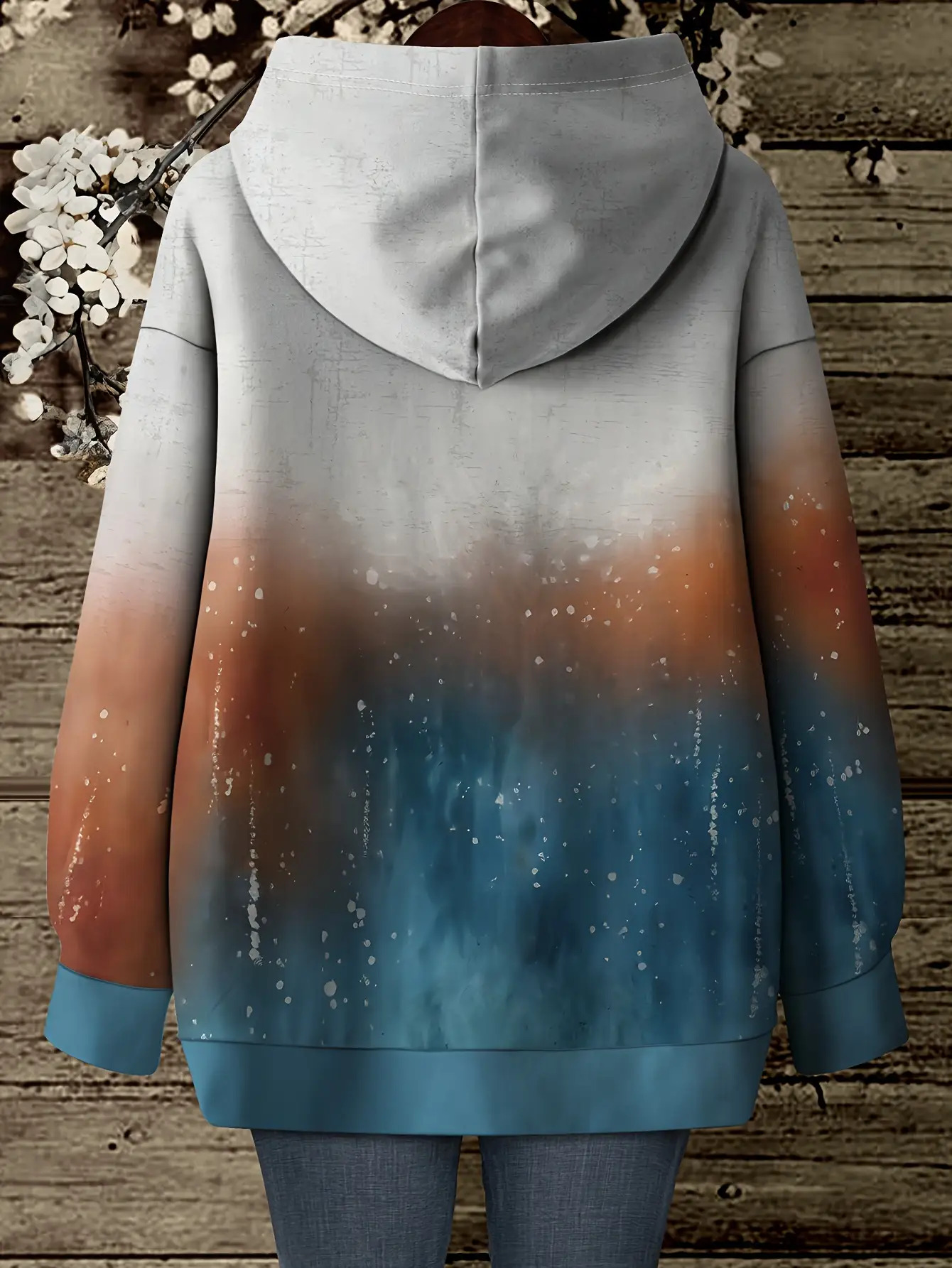 Women's Plus Size Oversized Hoodie - Pastel Blue Pink Purple Orange Ombre Gradient Print with Tree of Life & Bohemian Floral Design, Long Sleeve Round Neck Pullover Sweatshirt, All-Season Casual Comfortable Sweater for Women (No Belt/No Accessories Included) - Geometric Pattern, Front Pocket, Hand Wash Dry Clean, Relaxed Fit, Vibrant Colors, Bohemian Style, Plus Size Fashion, Hoodies for Women Plus Size, Plus Size Women Clothing Fleece Hoodie, Plus Size Sweatshirts for Women,