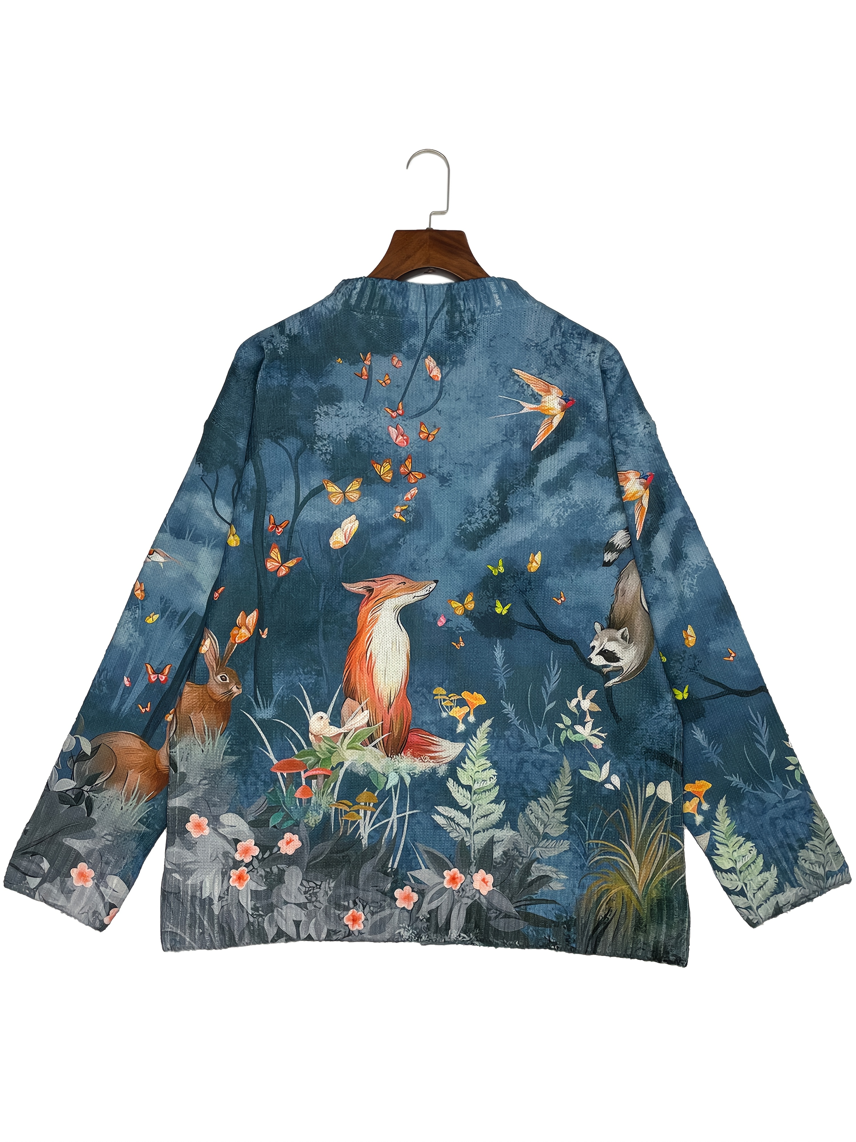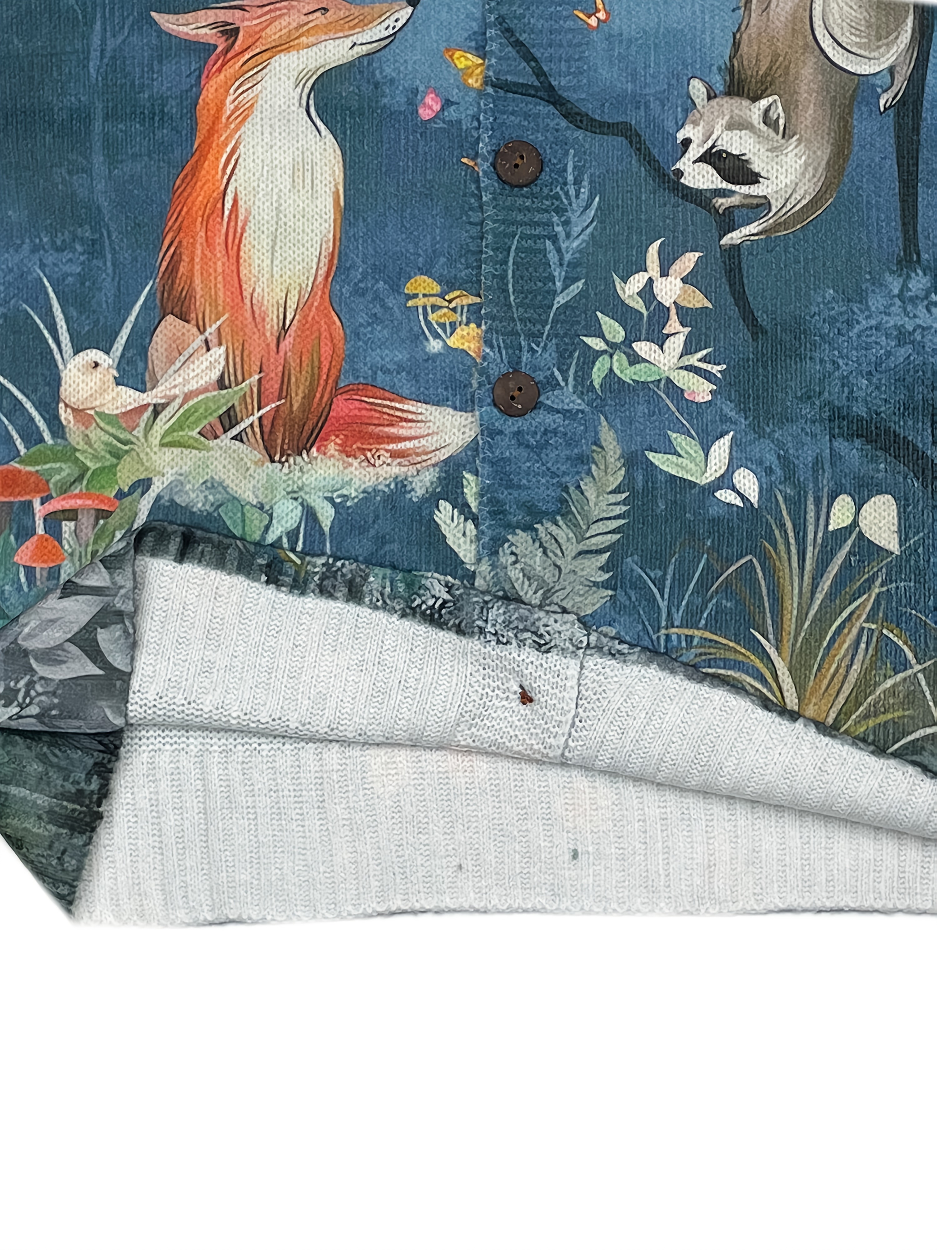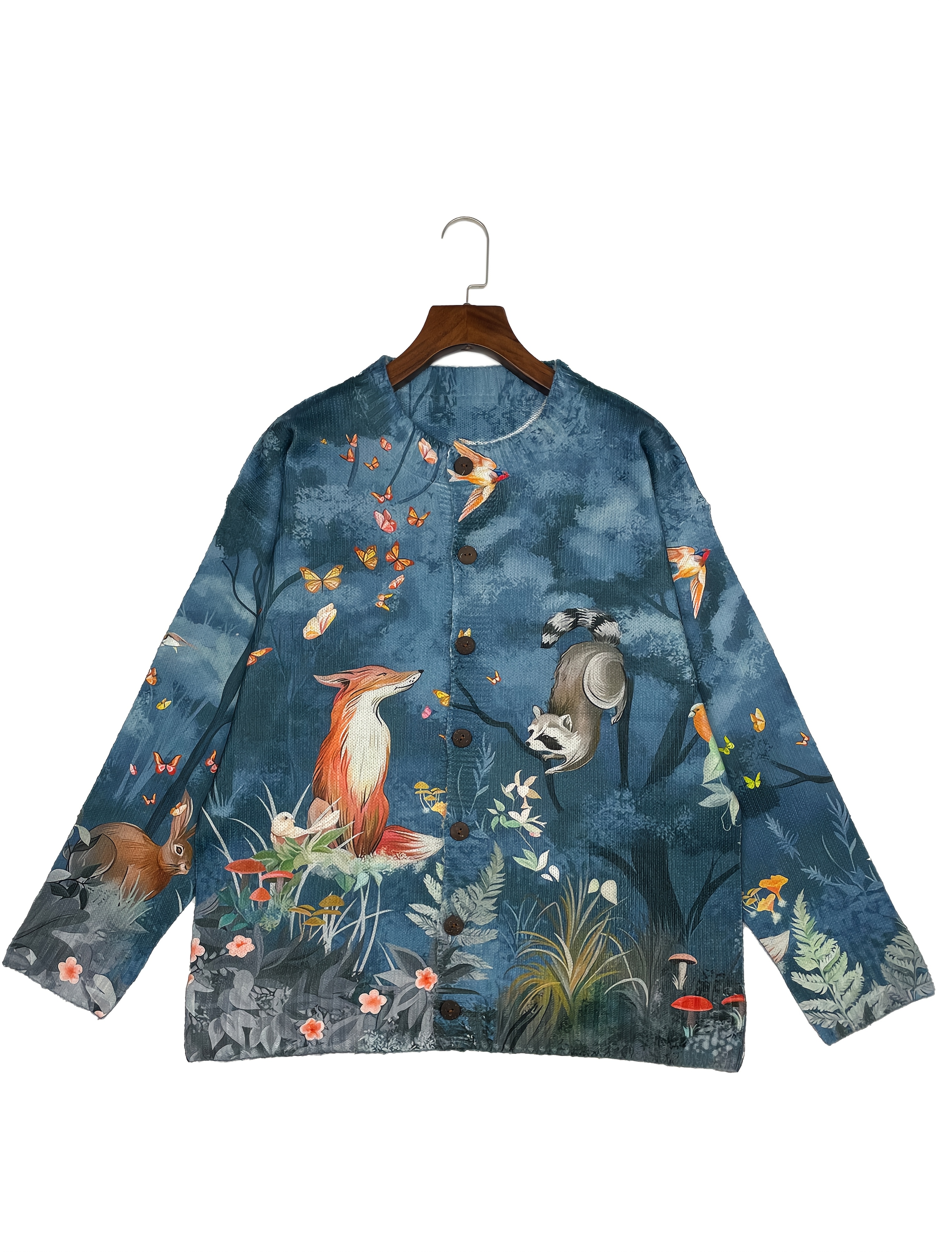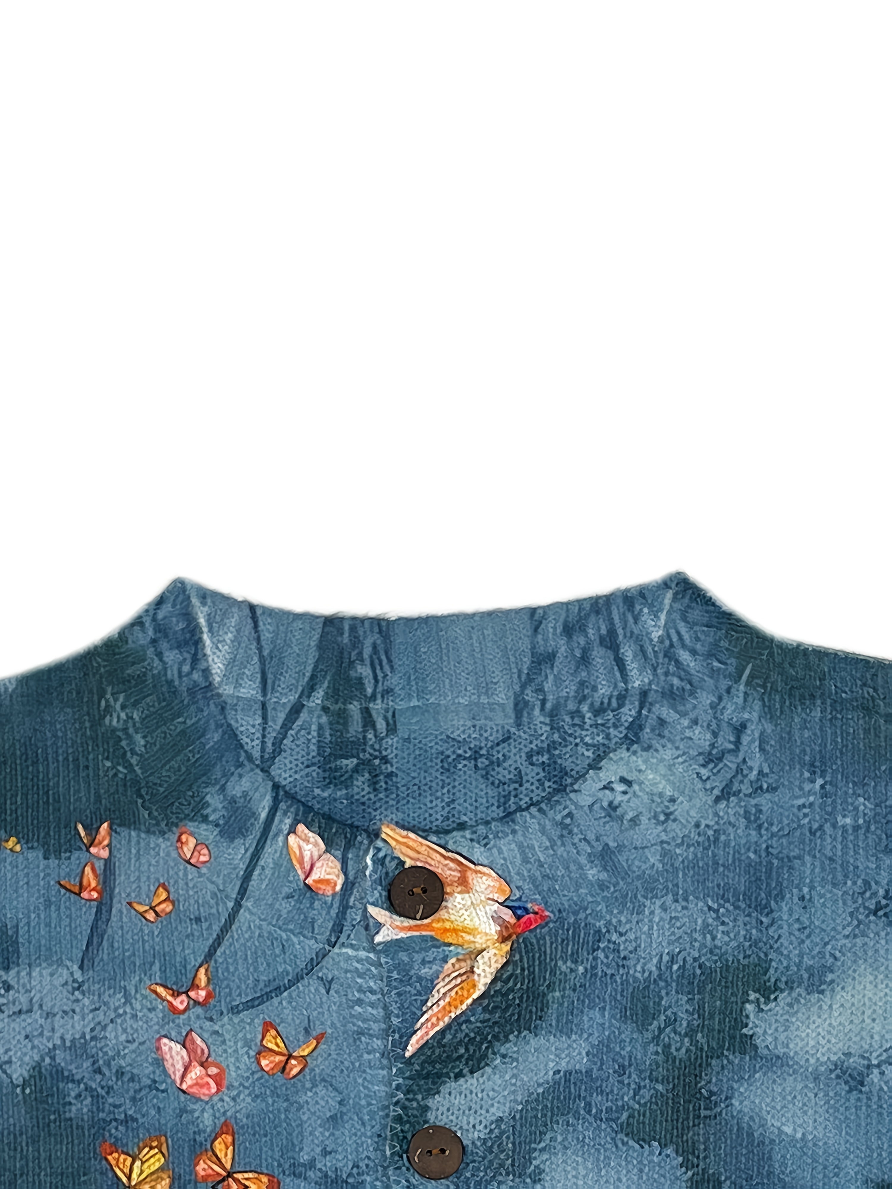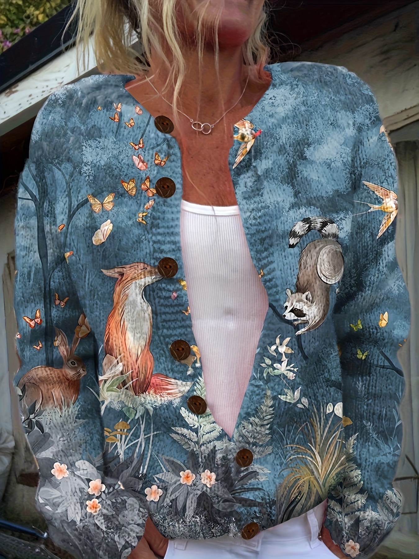 Plus Size - Large Size Women'S Button Sweater | Fashion Button Front Lapel, Plant Art Pattern, All-Season Light Casual Outing, Natural Inspiration Design, Soft Texture, V-Neck, Long Sleeve, Regular Fit