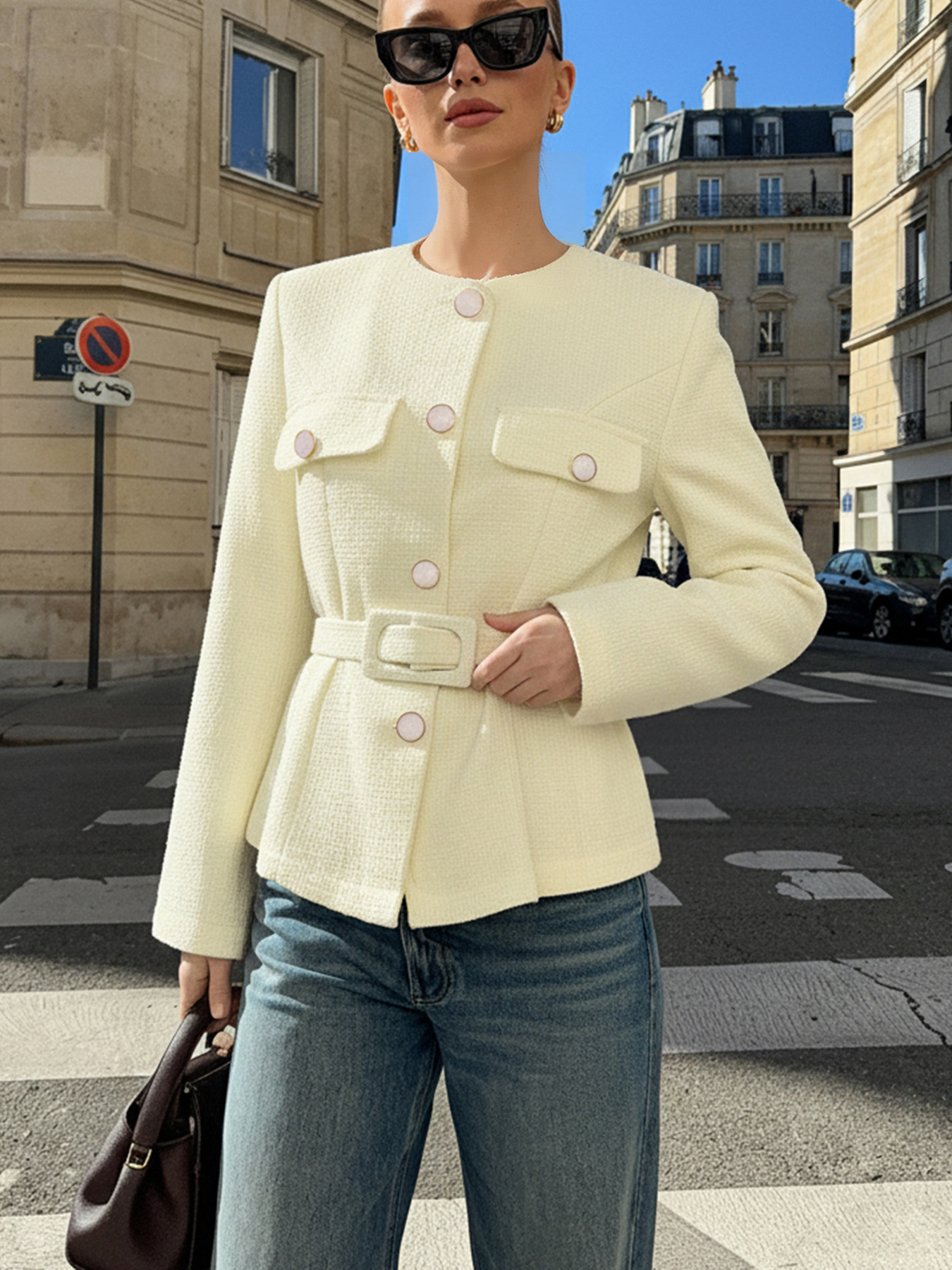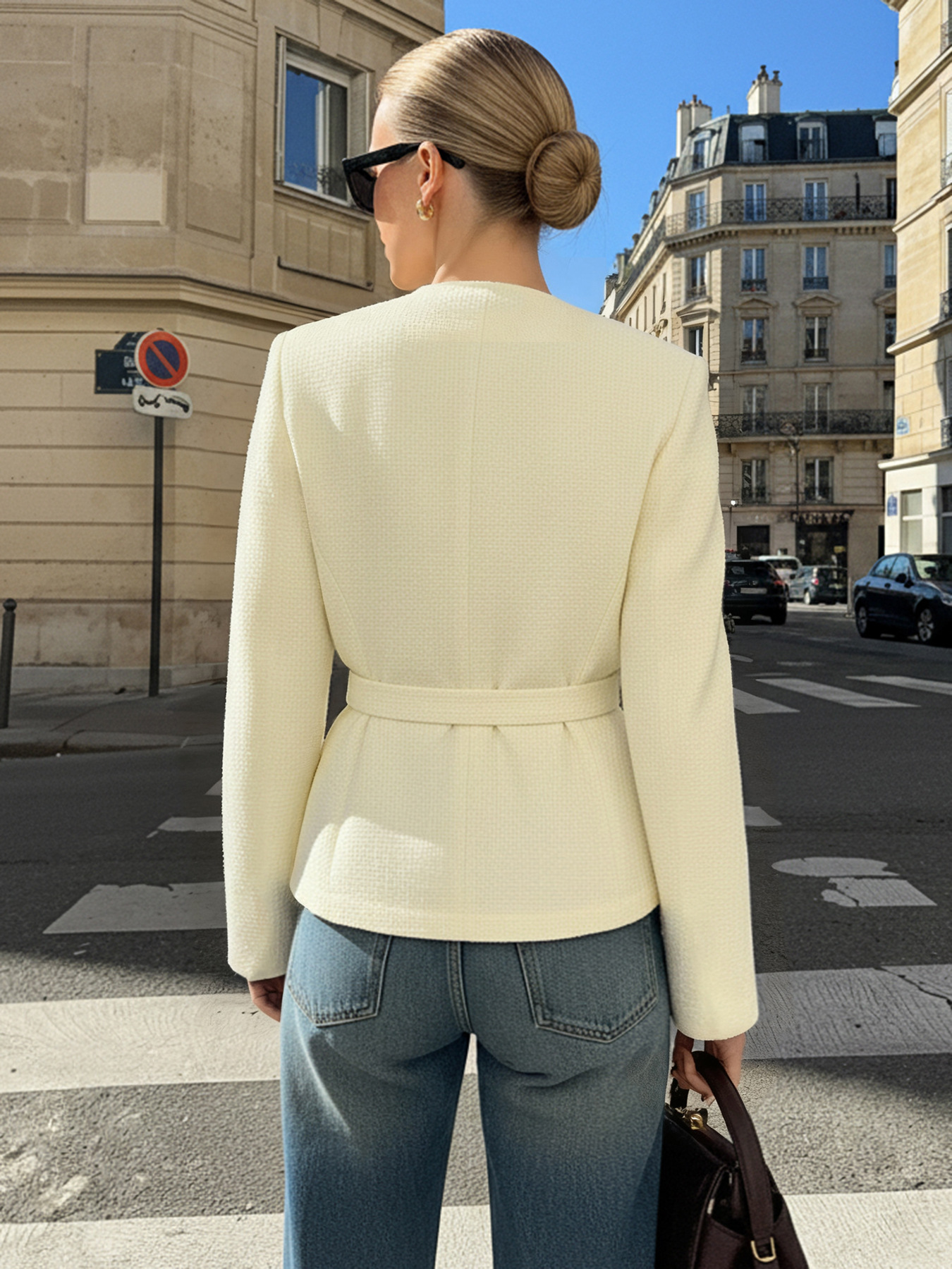 Elegant Versatile Waistcoat | Chic Casual Blazer, Stylish Slim-Fit Versatile Outerwear, Women'S Tweed Textured Commuting Single-Breasted Top, Material, Fall/Winter Season, Long Sleeve.