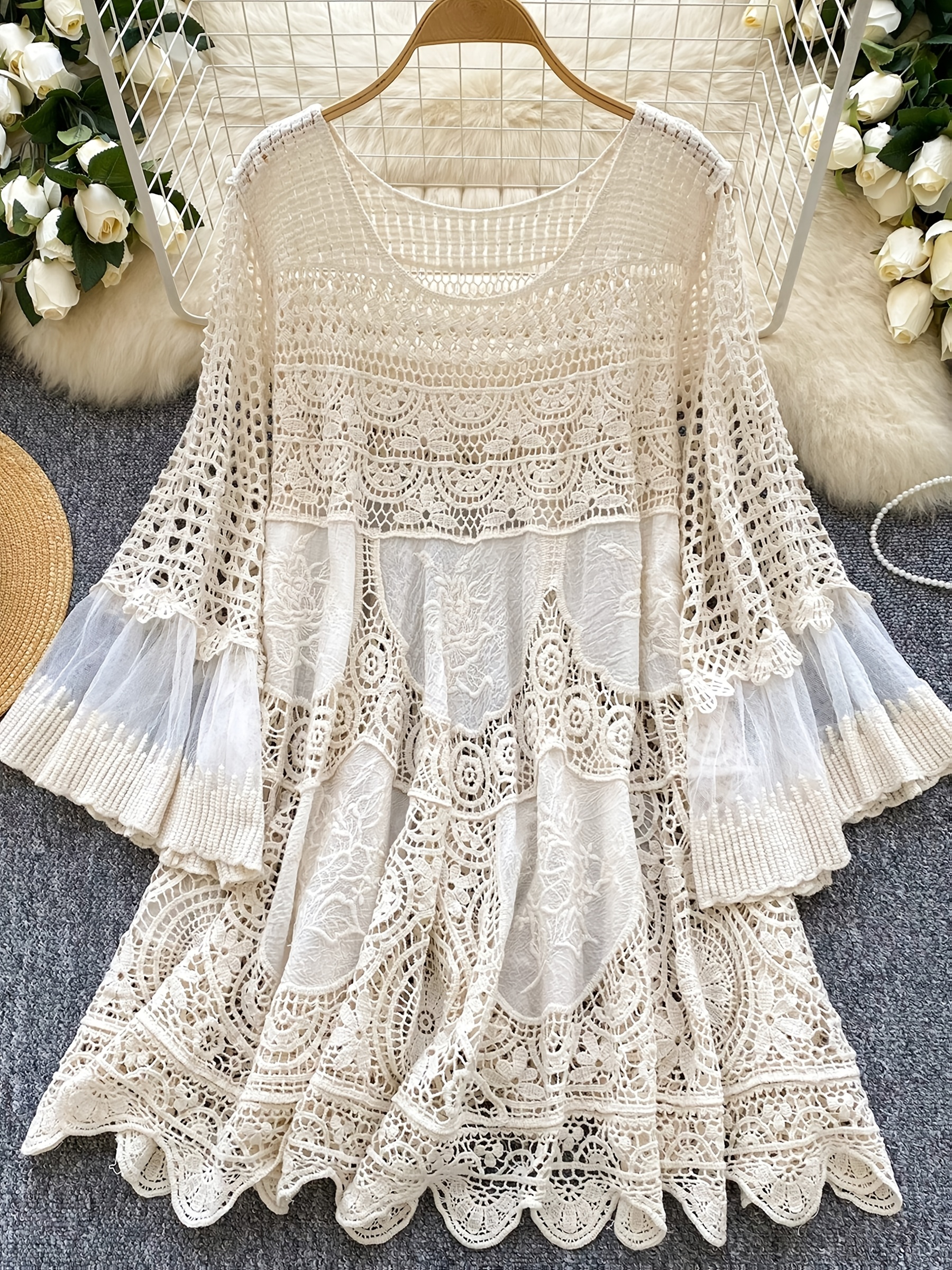 NEW Bohemian Style Vintage Dress Women's Loose Hollow Hook Flower Design Short Midi Skirt