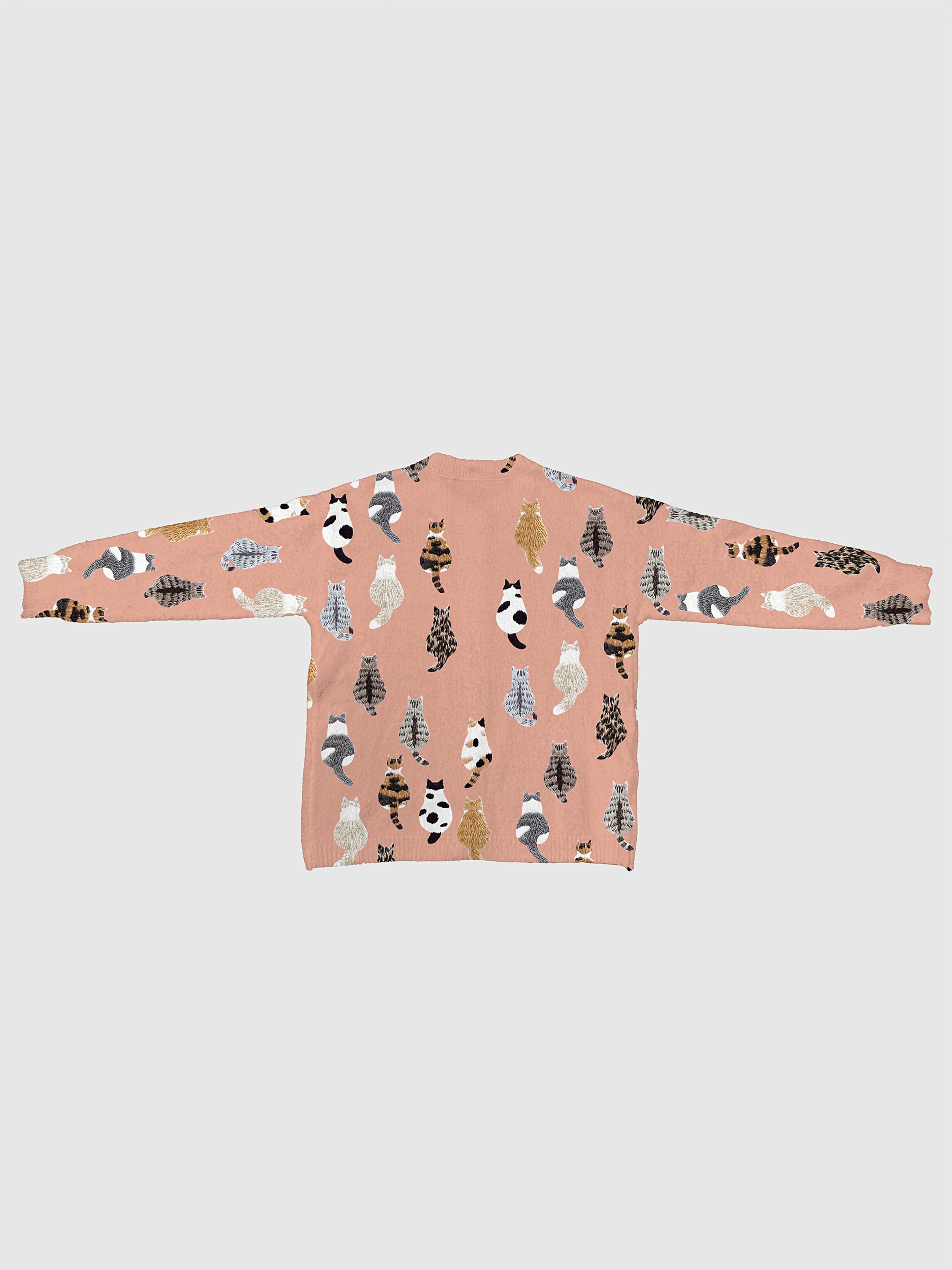 [Playful Design] Plus Size - Women's Lightweight Sweater Jacket - Pastel Pink With Black & White Animal Print, Button-Front Closure, Non-Bulky Long Sleeve Cardigan For Fall/Winter, Everyday & Formal Outfits - Position BK 052032, Fall Fashion, Playful Design, Comfortable Fit, Stylish Outerwear, Fashion Lovers, Cat Cardigan/Sweater For Women, Cardigan For Curvy Women, Curve Cat Print, Cardigans Women Good Quality, Vest Woman Large Size With Sleeve