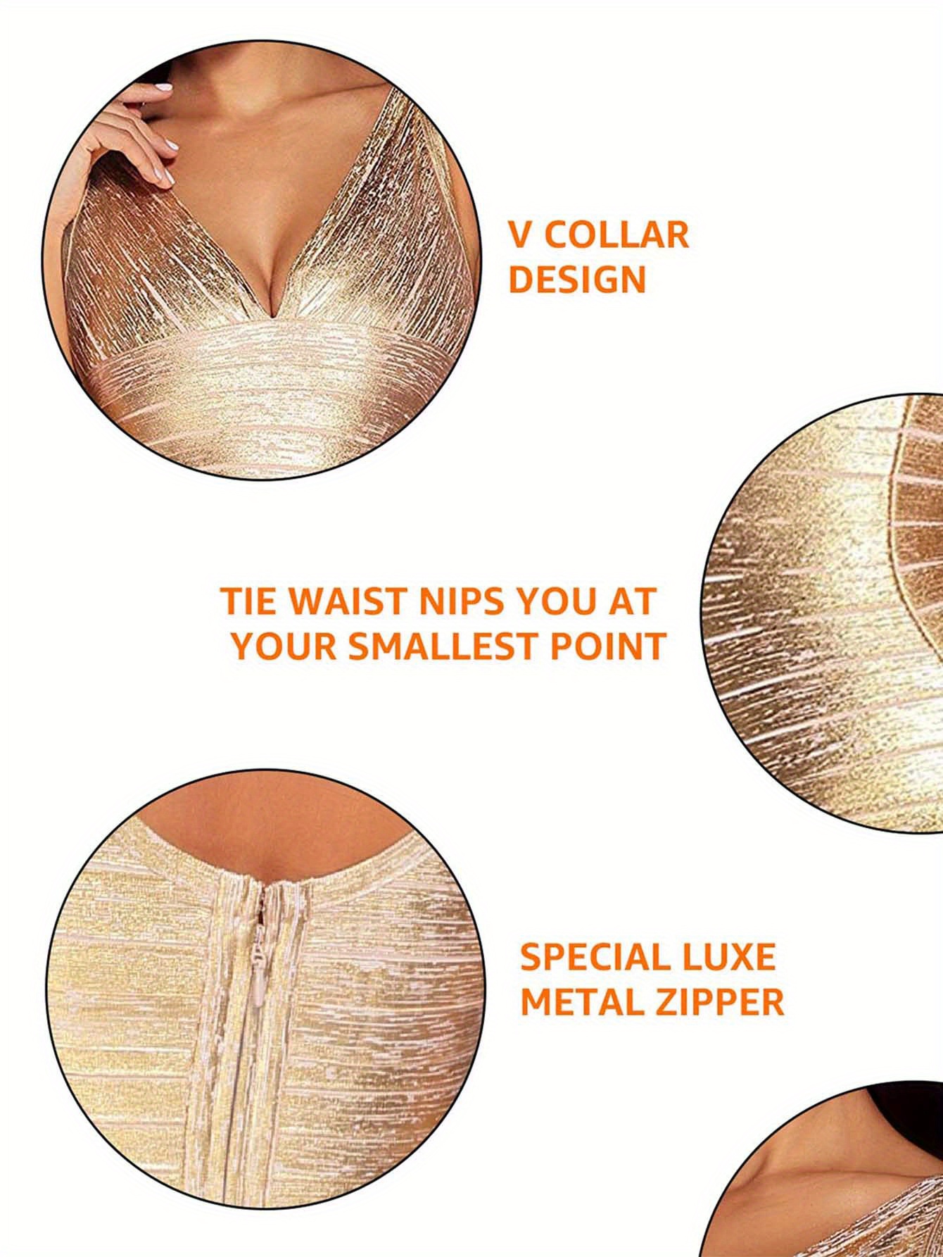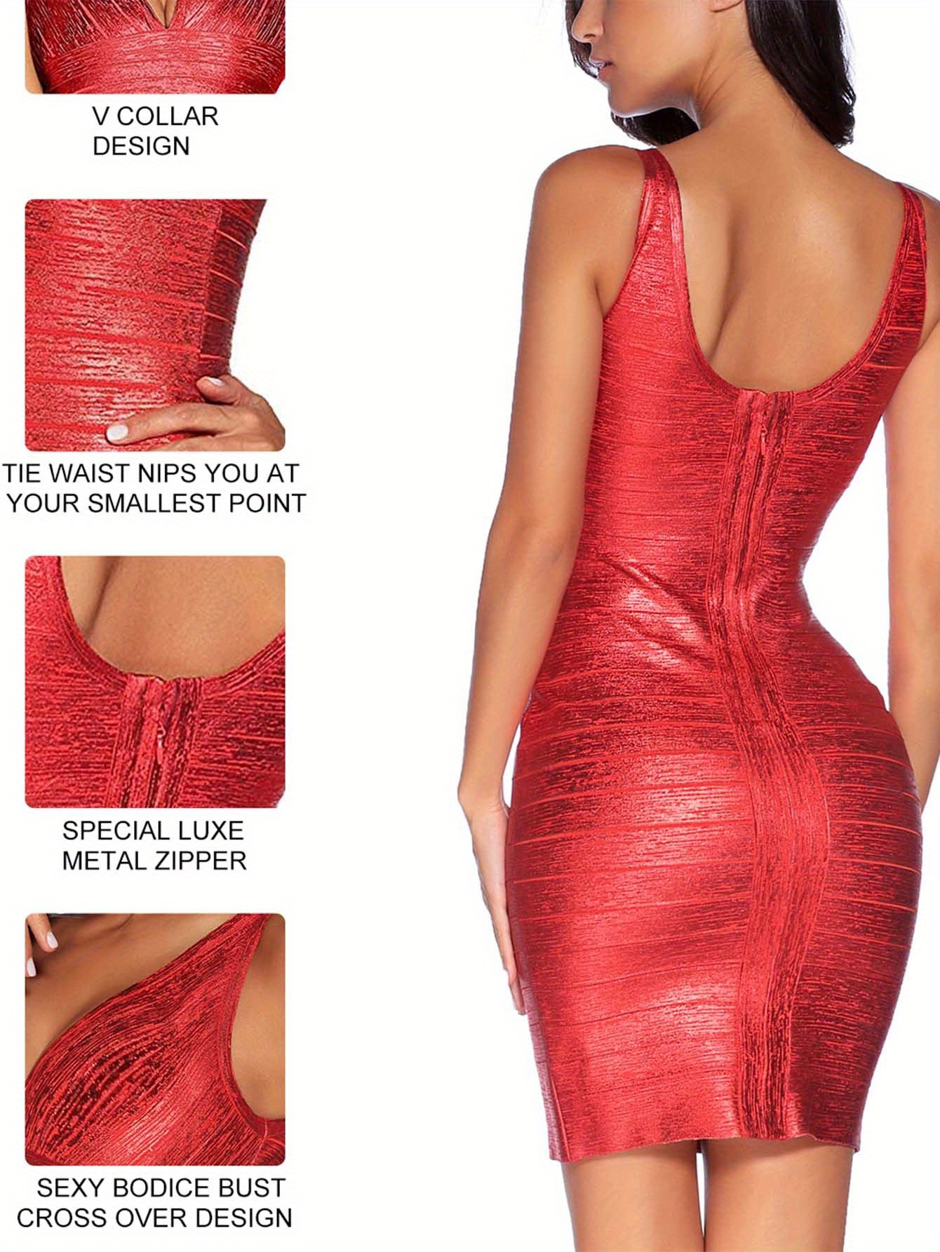 [Sexy Cocktail Dress] Sexy V-neck Bandage Bodycon Cocktail Dress for Wedding Guest Strap Foil Formal Gowns Evening Dress