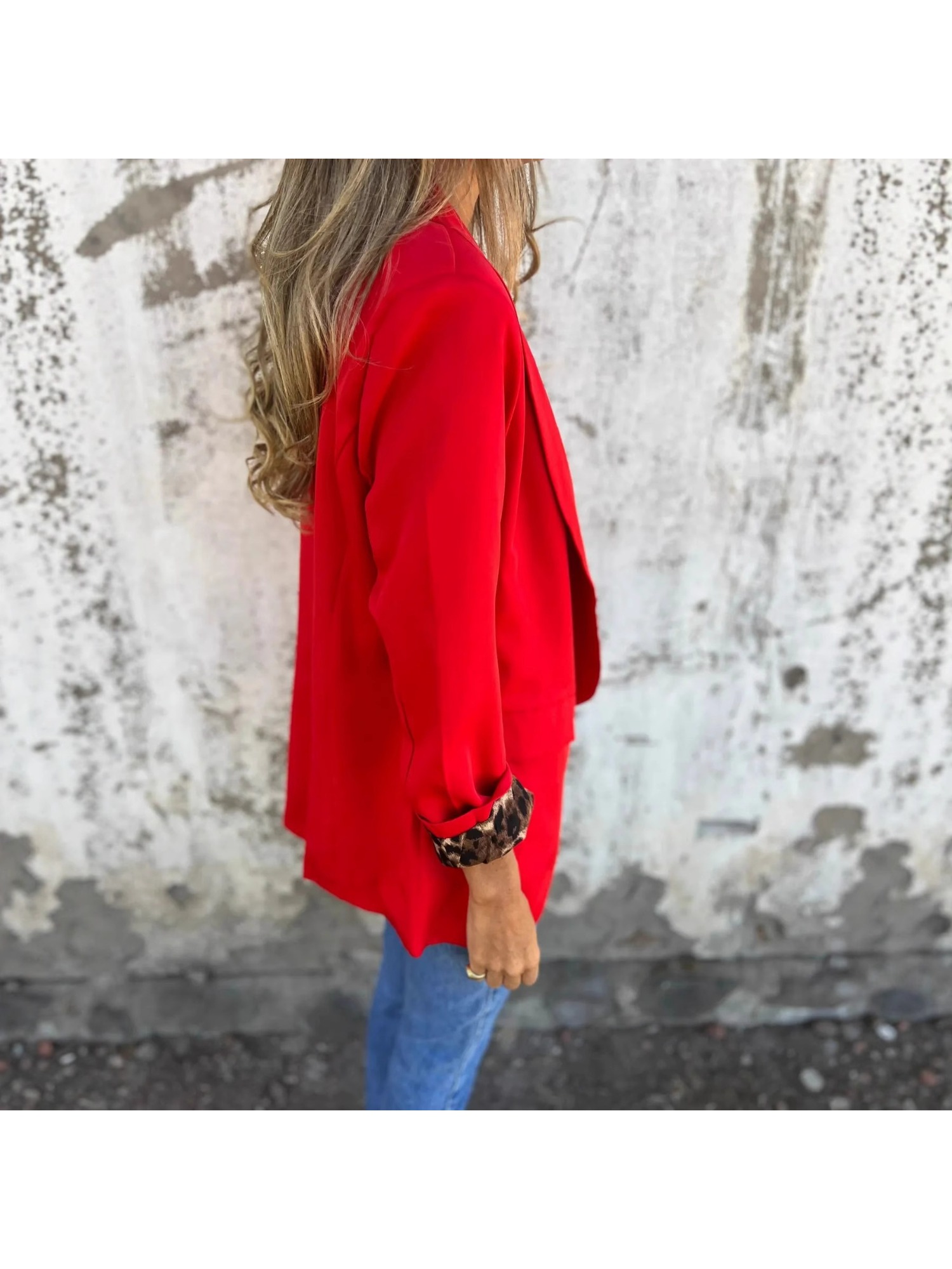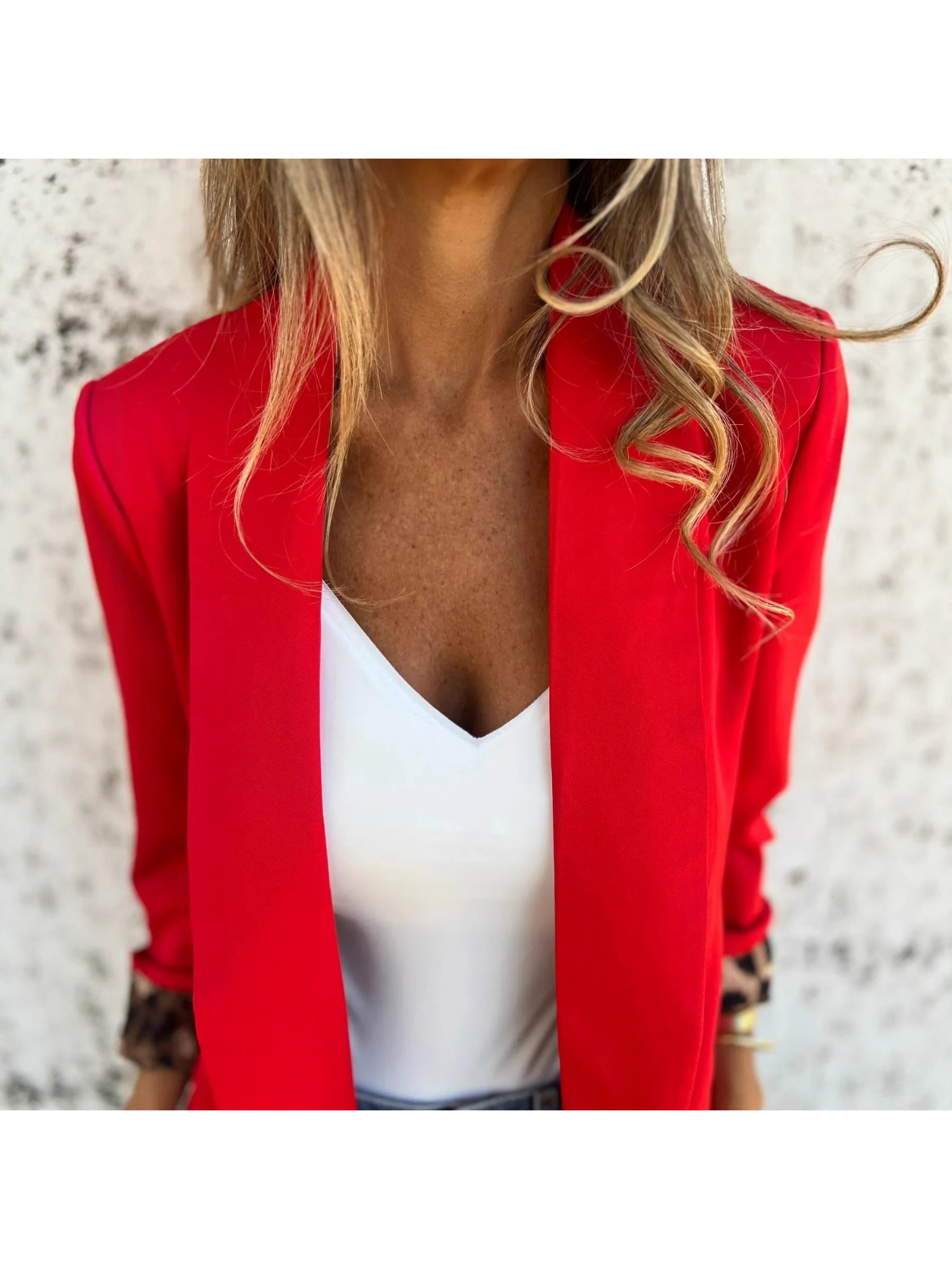 Women'S Elegant Red & Color Block Cheetah Print Lapel Collar Small Suit Jacket - Structured Loose Fit Tailored Blazer, Single-Button Closure, All-Season Versatile Coat for Casual & Formal Outfits, Long Sleeve Tailored Jacket with Notched Lapel