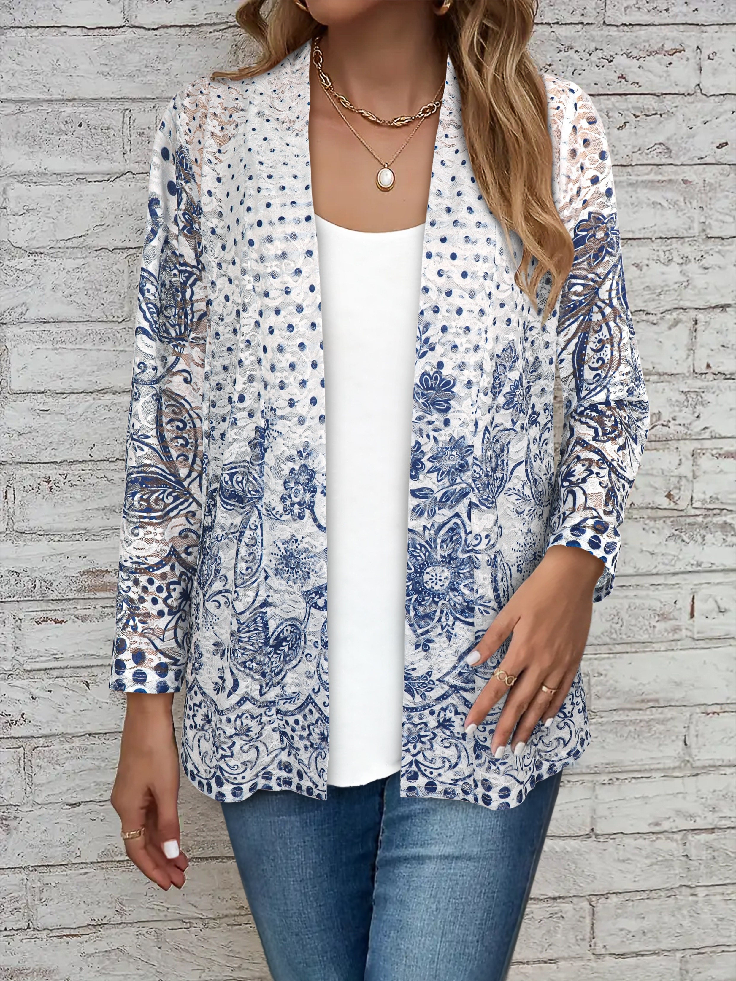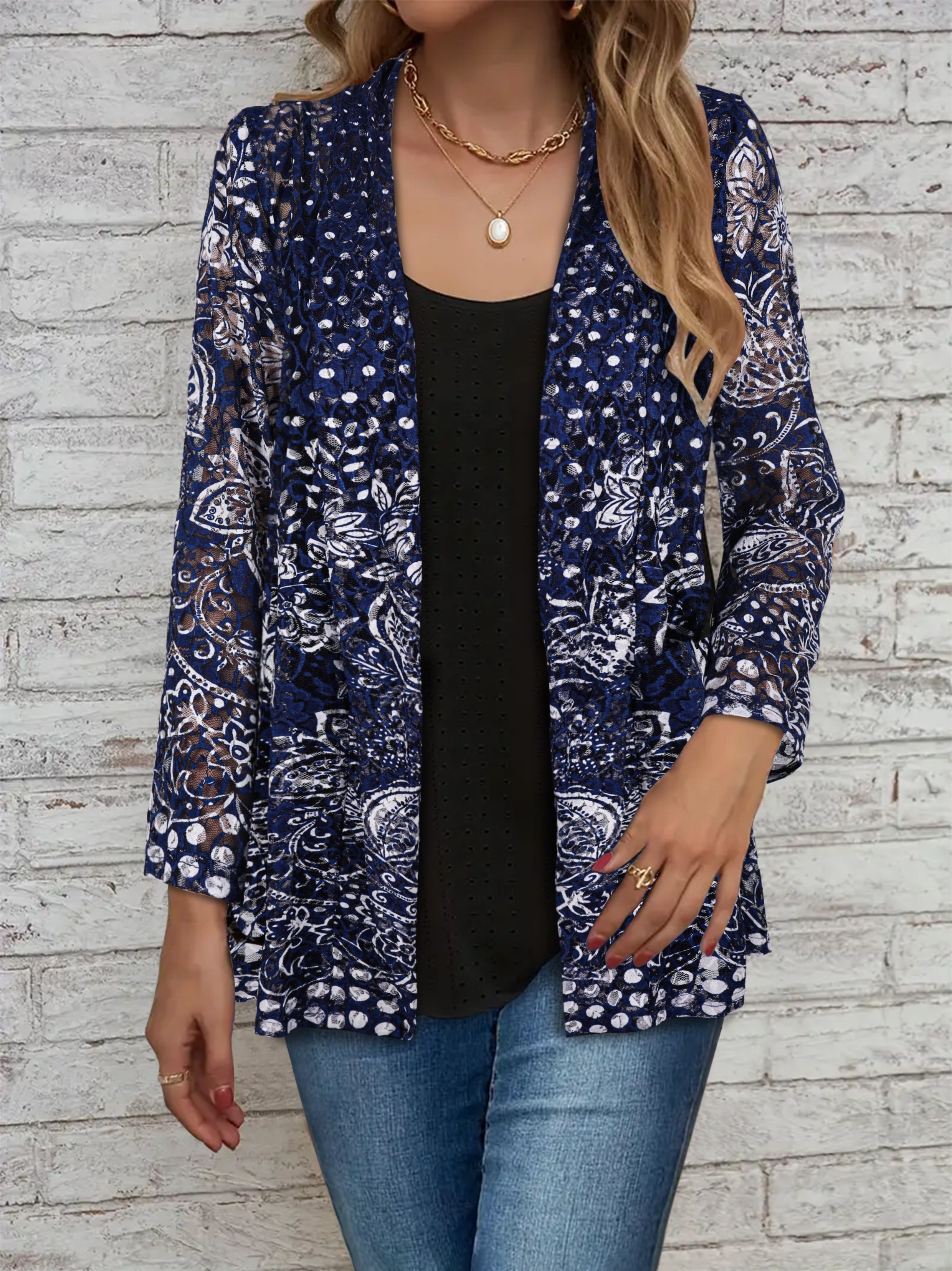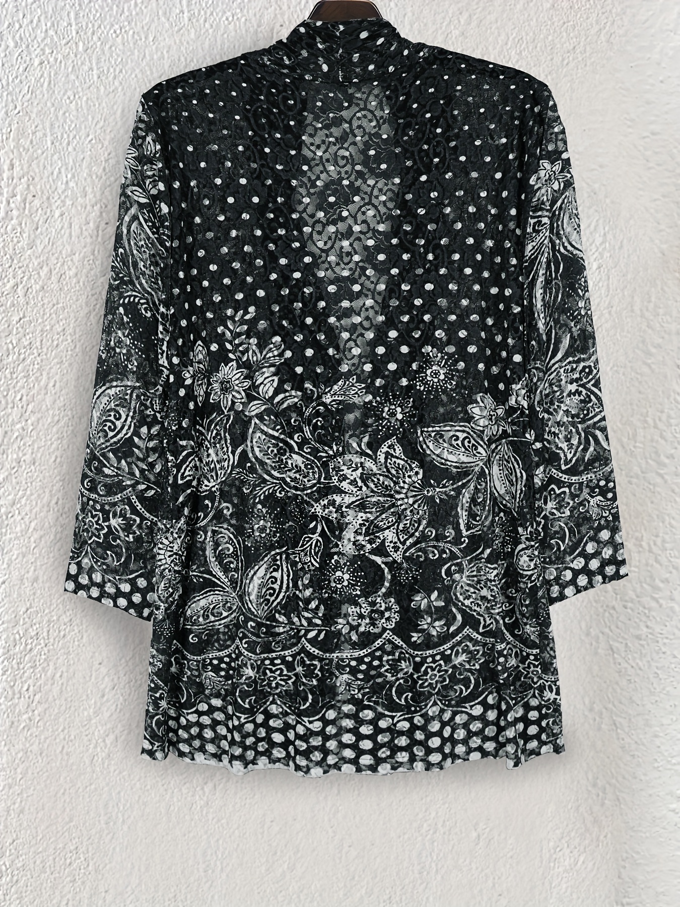 Women's Large Size Lace Color Block Anti-Sun Open Cardigan Suitable for Beach and Street Wear in All Seasons