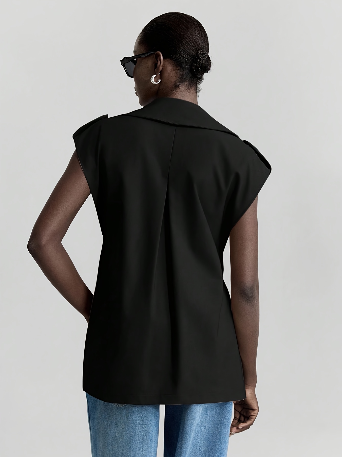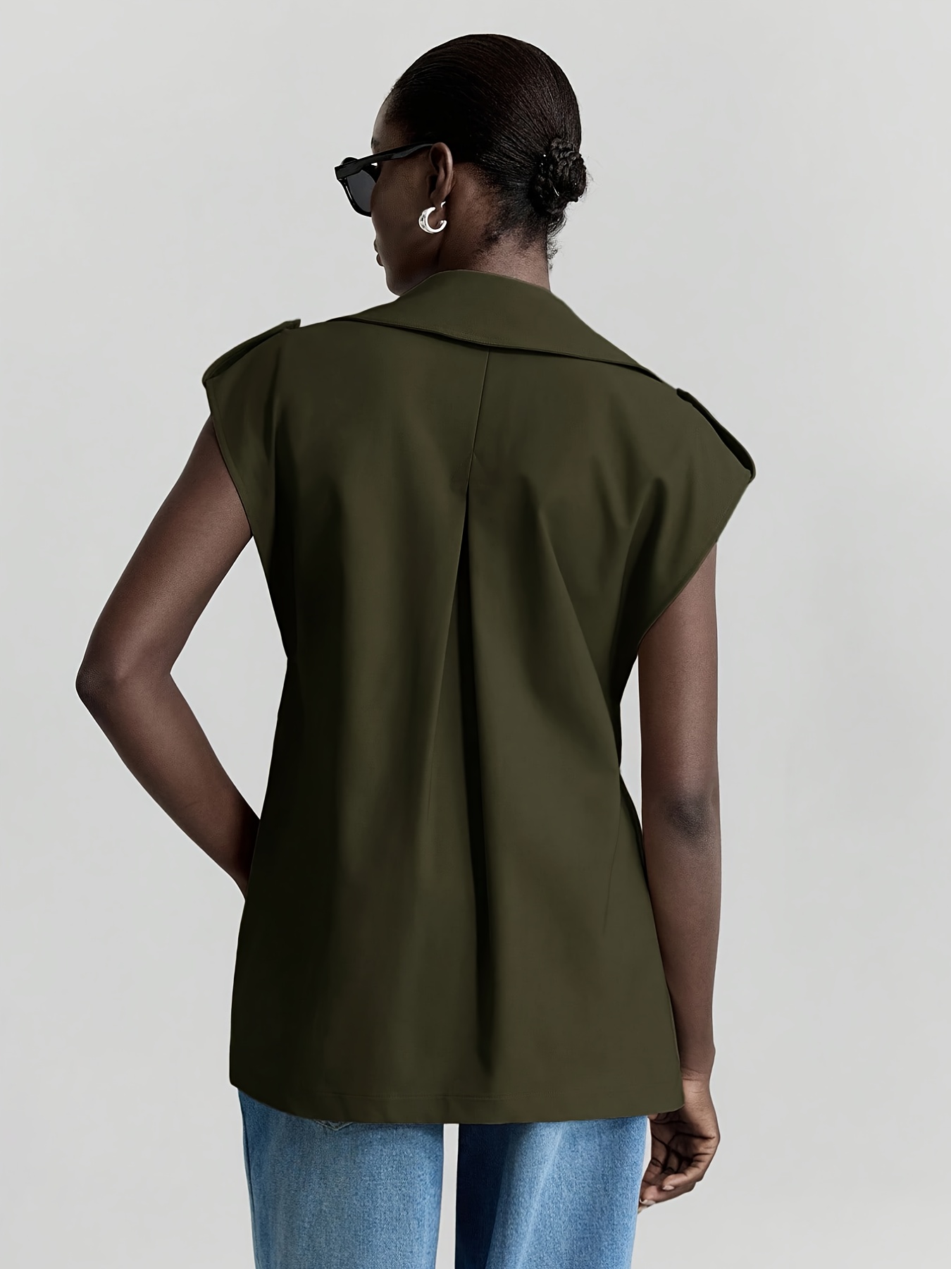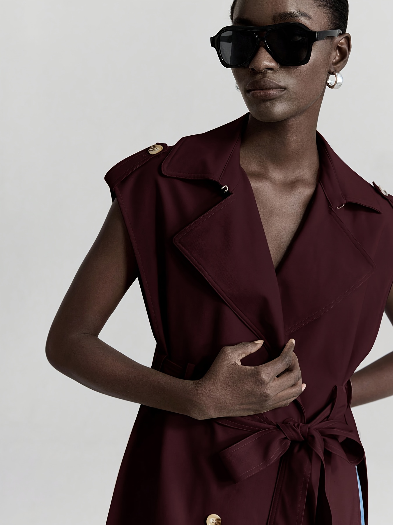 Women's Sleeveless Blazer Coat - Belted Lapel Collar H-Line Tailored Jacket, Beige/Brown/Black/Navy/Gray, Machine Washable All-Season Office Wedding Party Uniform, Structured Lapel Lapel Suit Outerwear